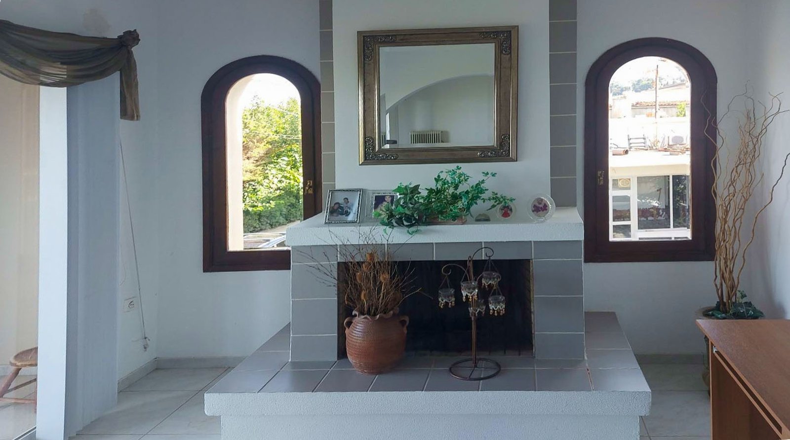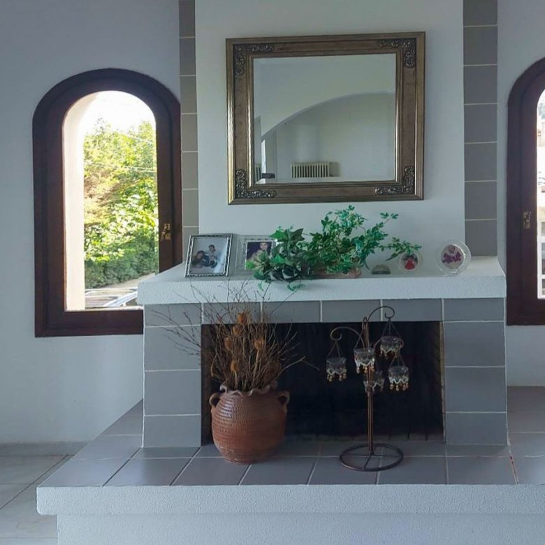 - Τζάκια, ξύλινα πατώματα, λευκές επιφάνειες.