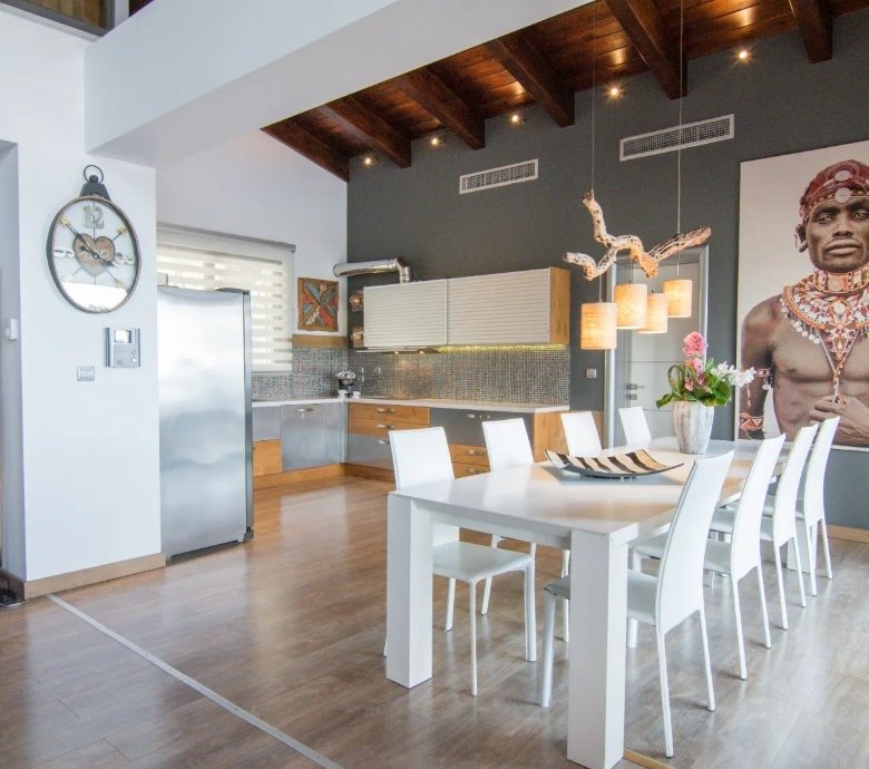 • Σύγχρονη κουζίνα με ποιοτικές ηλεκτρικές συσκευές και καθαρές γραμμές