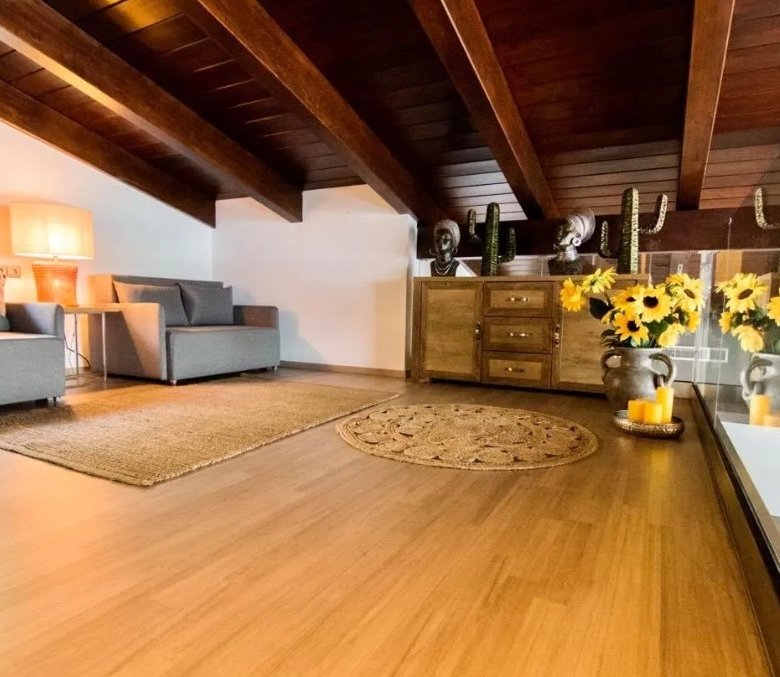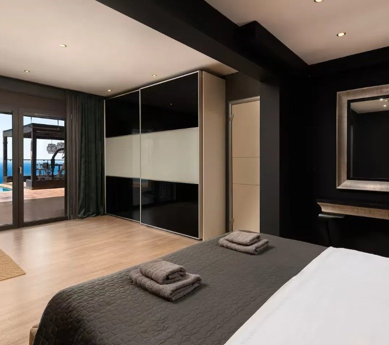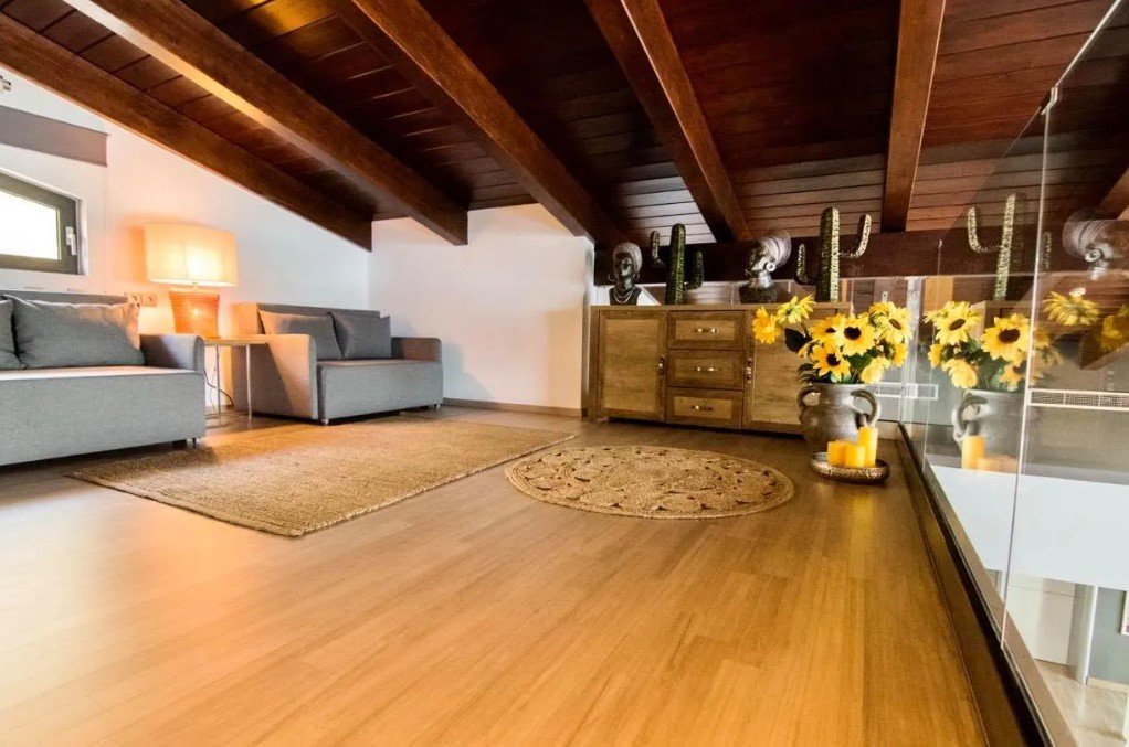 • Όροφος: κύριο υπνοδωμάτιο με ιδιωτικό μπάνιο και δεύτερο σαλόνι για απόλυτη ιδιωτικότητα.