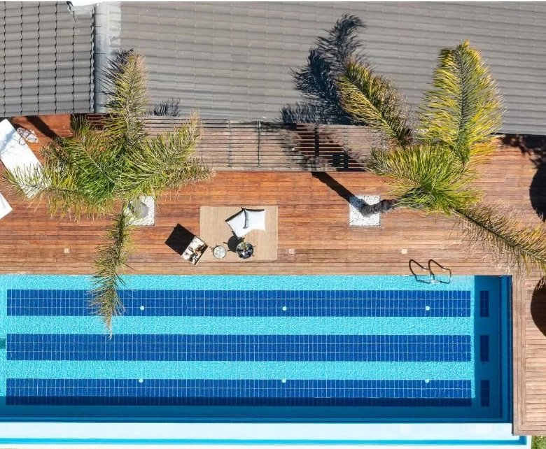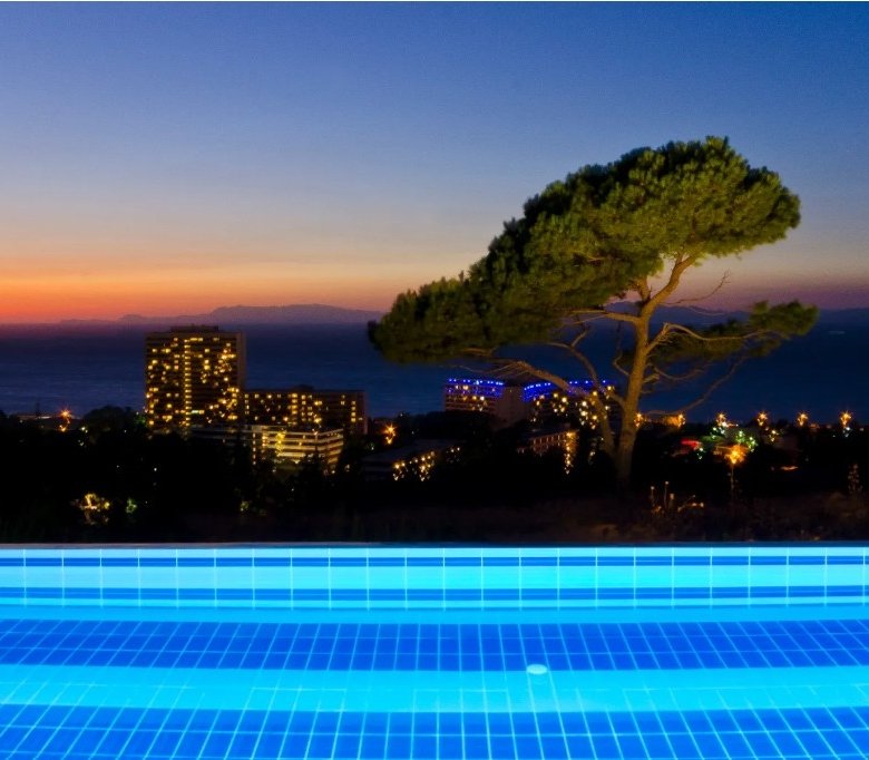 • Πισίνα 60 τ.μ., μεγάλες βεράντες με απεριόριστη θέα θάλασσα