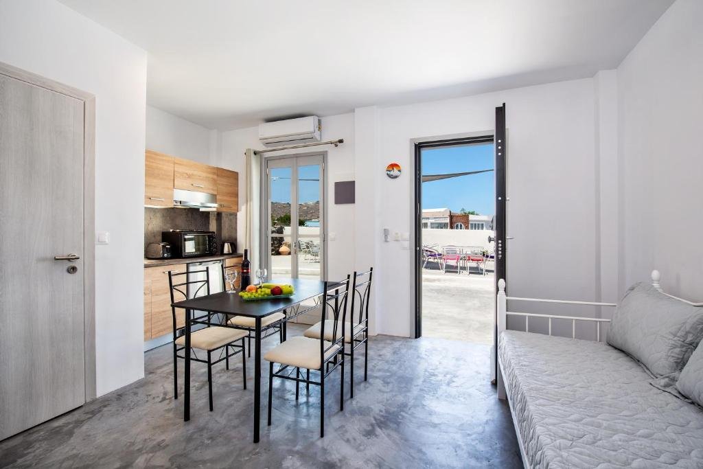 4 σουίτες 35 τ.μ. (1ος–2ος): διπλό κρεβάτι, μπάνιο, εσωτερικό τζακούζι, θέα θάλασσα.