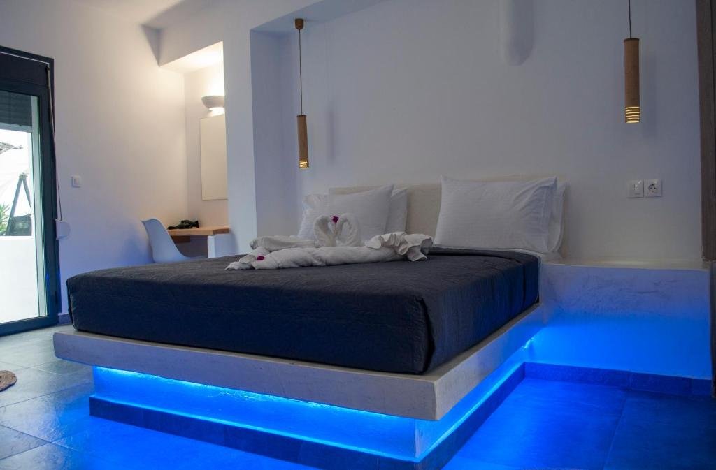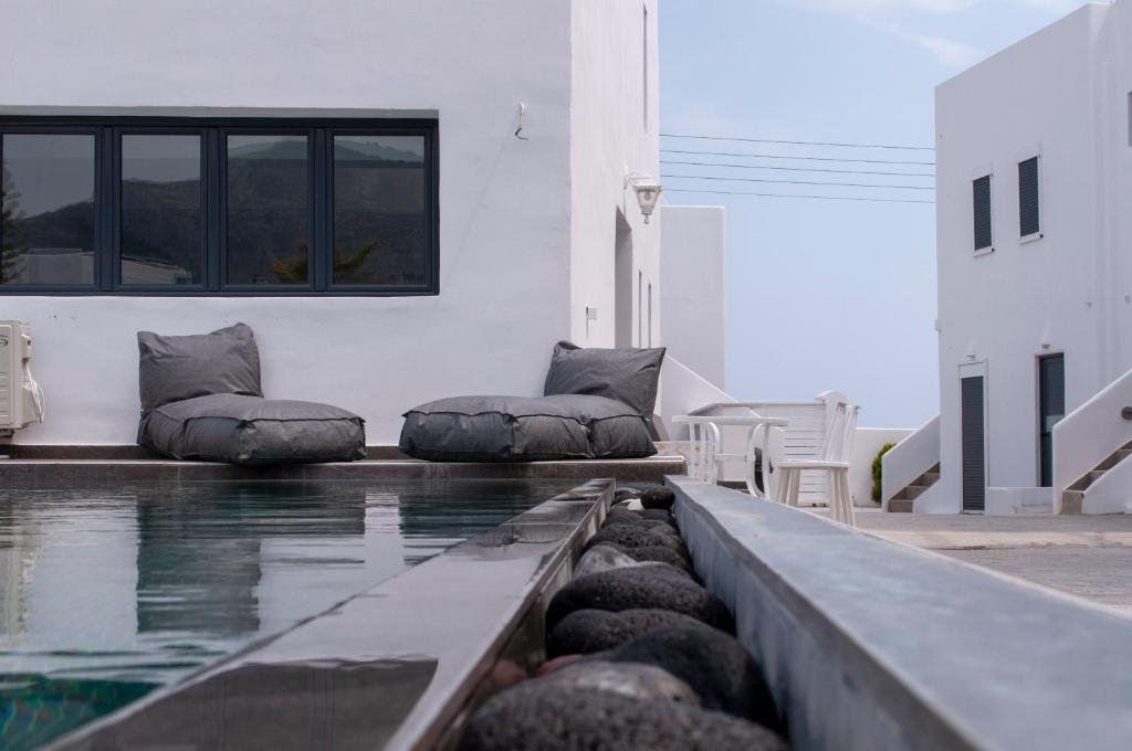 Αποτελείται από 21 μονάδες (σουίτες/δωμάτια) με σύγχρονο εξοπλισμό, ιδιωτικά τζακούζι/μικρές πισίνες σε αρκετές κατηγορίες και θέα θάλασσα. Κοινόχρηστοι χώροι: χώρος πρωινού, reception, κοινόχρηστη πισίνα και υπόγειο με 5 δωμάτια προσωπικού, 2 λουτρά, laundry–στεγνωτήριο και επαγγελματική κουζίνα.