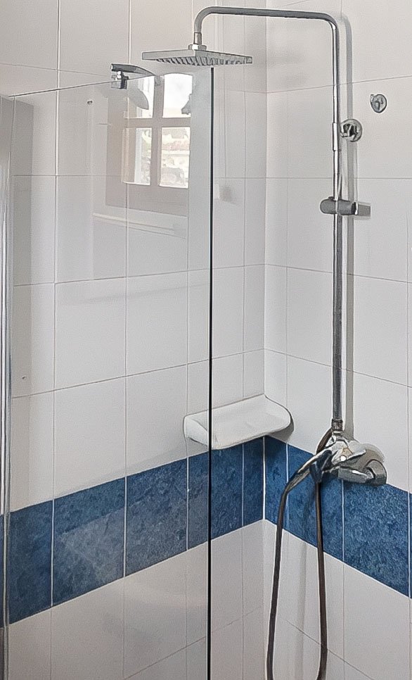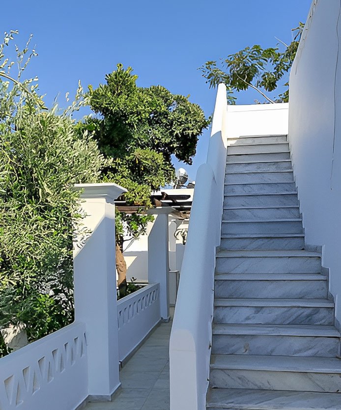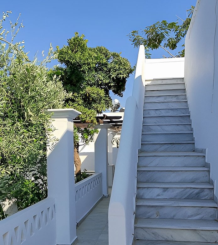 – Α’ όροφος 72,13 τ.μ.: 3 διαμερίσματα φιλοξενίας 2 ατόμων, επίσης με κουζίνα, μπάνιο και μεγάλα μπαλκόνια με θέα προς τη Χώρα και τη θάλασσα. Ημιυπαίθριος χώρος 19,56 τ.μ.