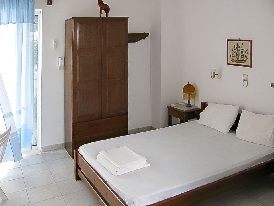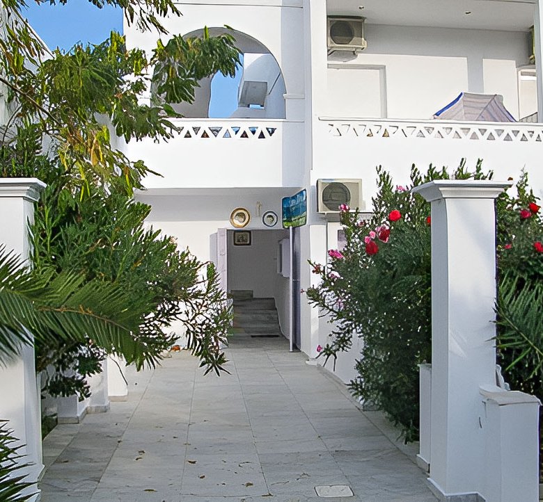 Πωλείται επιπλωμένο ξενοδοχείο δύο επιπέδων, συνολικής επιφάνειας 450 τ.μ., σε οικόπεδο 4.500 τ.μ., σε απόσταση 5 λεπτών με τα πόδια από την παραλία Γυρίσματα, 2,5 χλμ. από τη Χώρα και 13,5 χλμ. από το αεροδρόμιο. Η μονάδα αναπτύσσεται σε ισόγειο και α’ όροφο, μέσα σε προσεγμένο εξωτερικό χώρο.