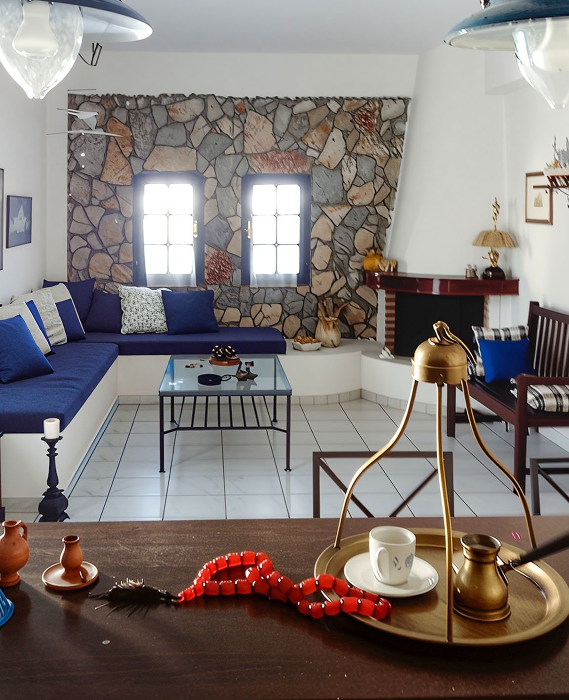 - Διαρρύθμιση: 2 υπνοδωμάτια, σαλόνι με τζάκι, κουζίνα, λουτρό